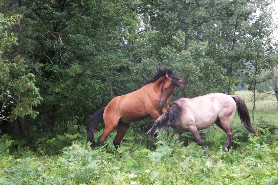 Grikis – itin gracingas arklys, galima sakyti – pats sau „dievaitis“, daug judesių, piruetų ar arkliškų pasispardymų, tokių vaikiškai nuoširdžių ir sukeliančių šypsnį, – tai paauglystės atspindžiai, vis dar šėliojantys jame, tačiau tuo pačiu – Grikis sparčiai bręsta ir itin veržiasi į „vyrų“ pasaulį, ir ne į eilinių, o tų, kurie visada viską daro nepriekaištingai, net užsidegdami cigaretę. Iki tikrų „vyrų“ Grikiui dar tolokai, mat jis tik iš išorės labai jau bando suaugusį vaidinti, o palik jį vieną, be bandos, – ir šis gražuolis kaip vaikas pradės panikuoti lygioje vietoje. Tik bandoje šis paauglys laisvai jaučiasi ir tik būdamas gentainių apsuptyje nevaržomai išdykauja, pakol negauna pylos nuo bandos vado Merkio. O dar kai ir jo geriausias draugas Kapučinas meta stabdžių strėlę Grikio link, paauglys iš karto „apsispakajina“.